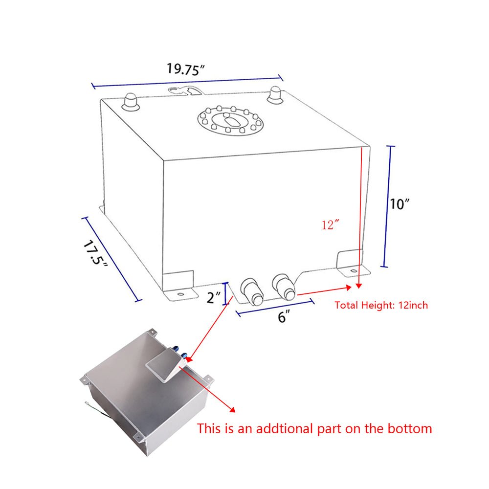 Size Information:Tank measures 19.75″ (L) x 17.50″ (W) x 10″ (H) ;Mounting tabs measure 18″ (L) x 19.25″ (W)  Center to Center