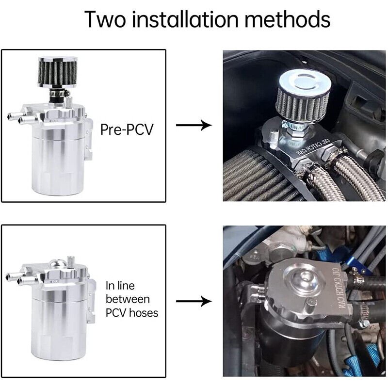 【Keep Engine Clean】The baffle system in the Oil Catch Can Kit could catch the oil and moisture from PCV/CCV air. prevent misfires due to carbon accumulation. keep the engine clean and prolongs engine life. Don’t use the filter on a PCV system. you’ll just break the vacuum and cause engine problems. This filter applies only to the front of the PCV system.
