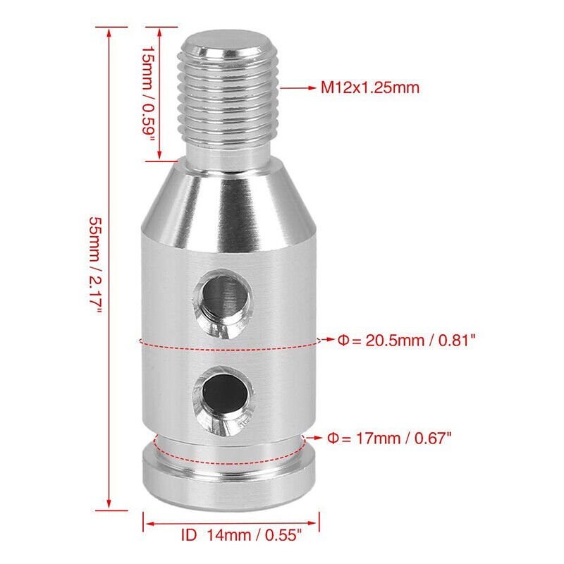 Size – Outer Thread Pitch: M12x1.25mm. Inner Adapter Diameter: 14mm/0.55″.