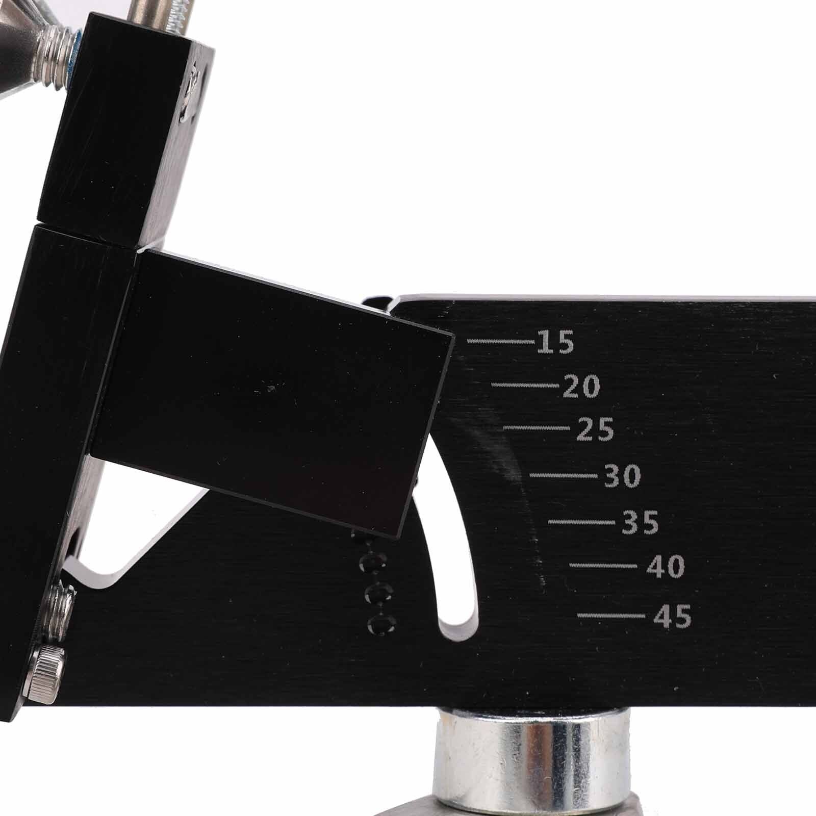 The Model 5005 adjusts and locks at angles from 15 to 45 degrees in 5-degree increments. offering maximum versatility. The 15-degree setting is ideal for sharpening the mulching section of bi-level mulching blades. while the 45-degree setting accommodates mower blades with a downward-tilted cutting edge.