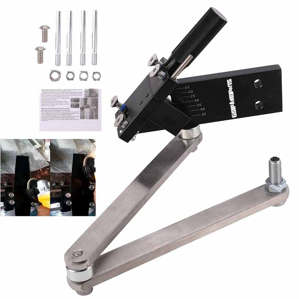 【Flexible Articulating Arm】The sharpener with unique design has a vise head to hold the mower blade and an articulating arm to attach the grinder. The arm holds the grinder and ensures the proper sharpening angle.