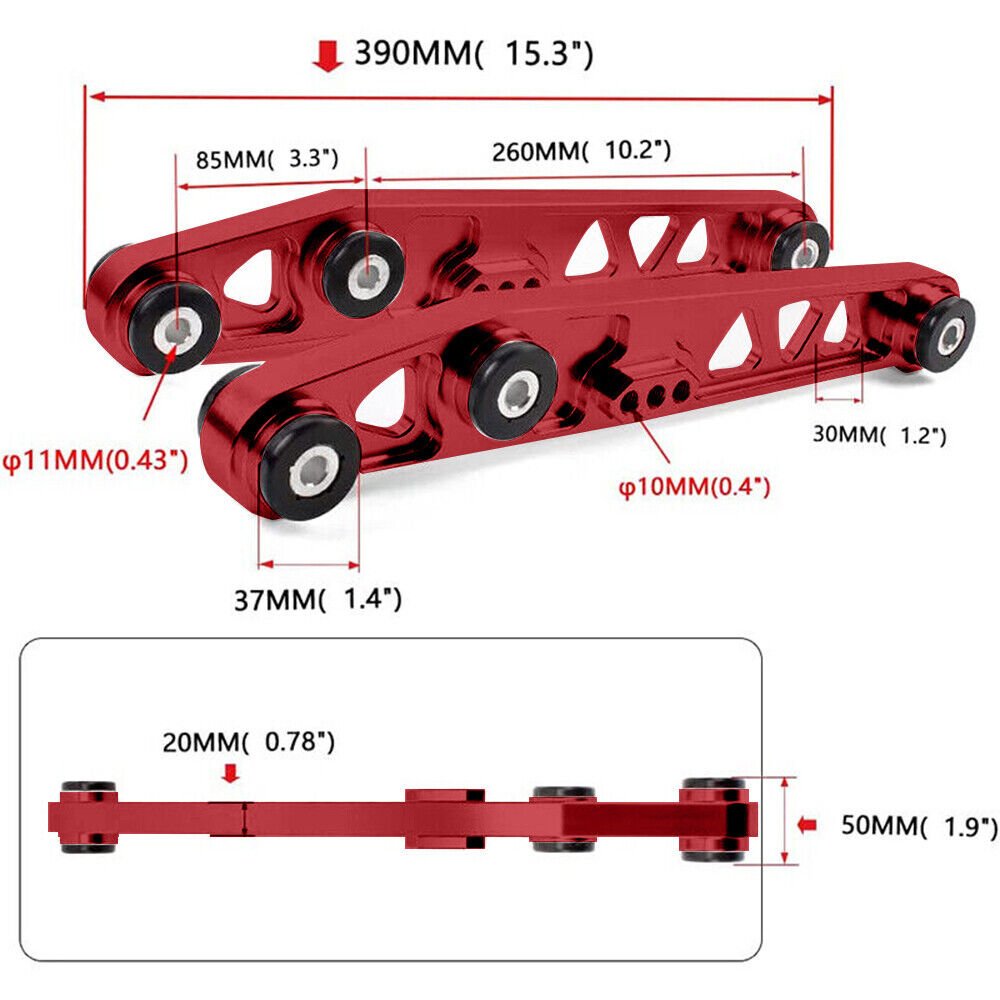 【High Qulity】All of our lower control arms are precision machined from 7075 aluminum. designed for extreme racing use to achieve maximum strength. They then undergo a corrosion-resistant treatment. Aluminum CNC bushing inserts prevent rust-related problems commonly found on stock bushings.