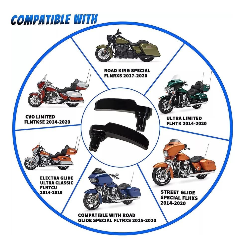 Fitment: Compatible with Harley Davidson models (Electra Glide. Street Glide. Road King. Road Glide. Tri Glide. Ultra Limited) from 2014-2023 with hard bags.