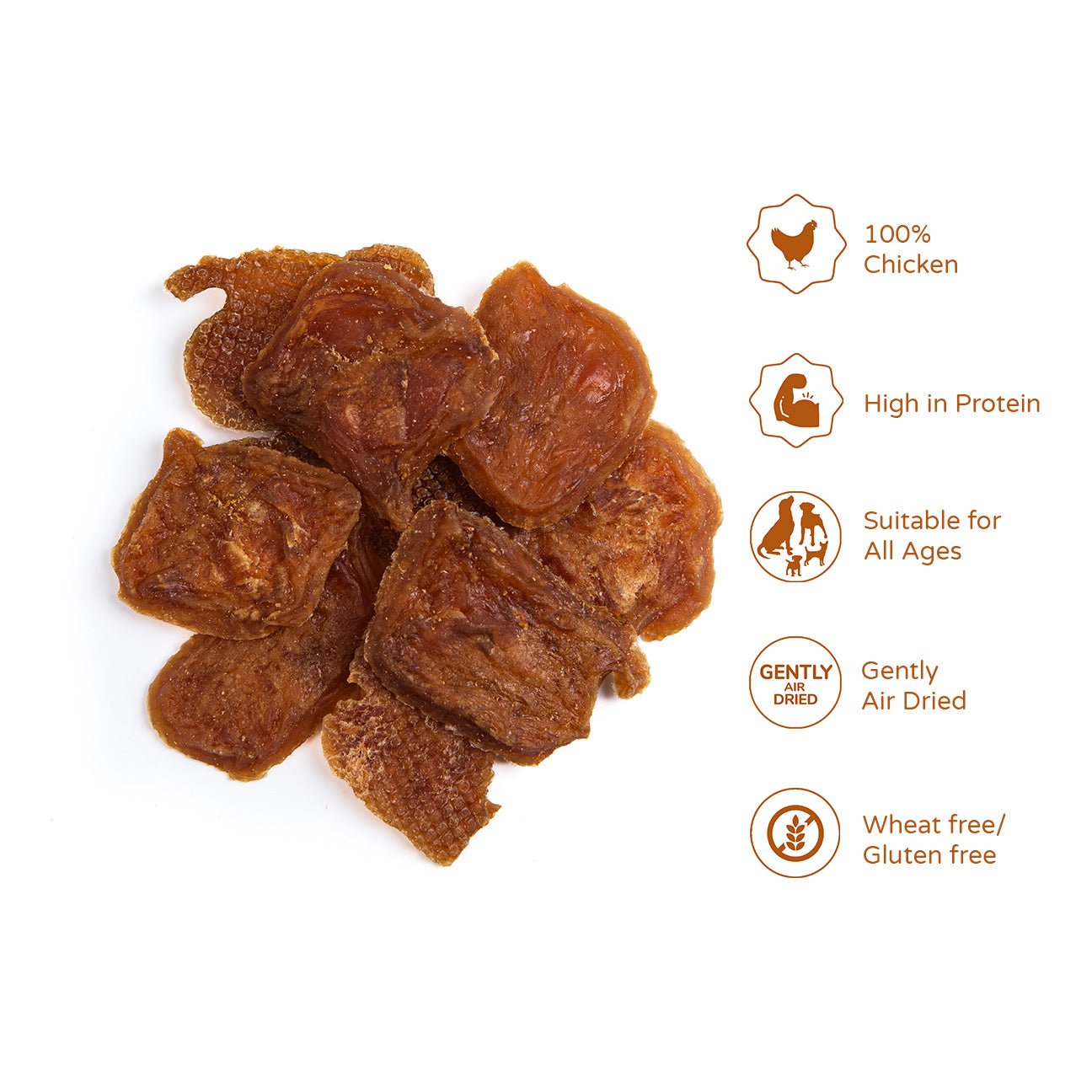 These small pieces of air-dried chicken breast are ideal for training. as a reward. or as a snack between meals. They smell of roast chicken and will be your dog’s sole focus! 100% chicken breast means no added sugars. which means you can spoil your furry friend while keeping them sprightly and their teeth sparkling!