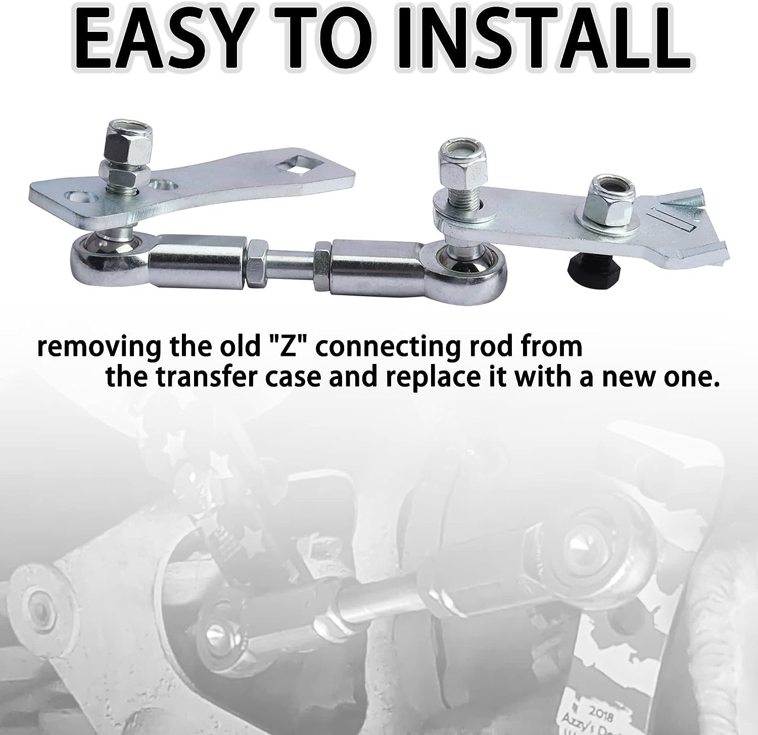 Easy to install. discard the old “Z” connecting rod. remove the lever from the transfer case. and replace a new one.