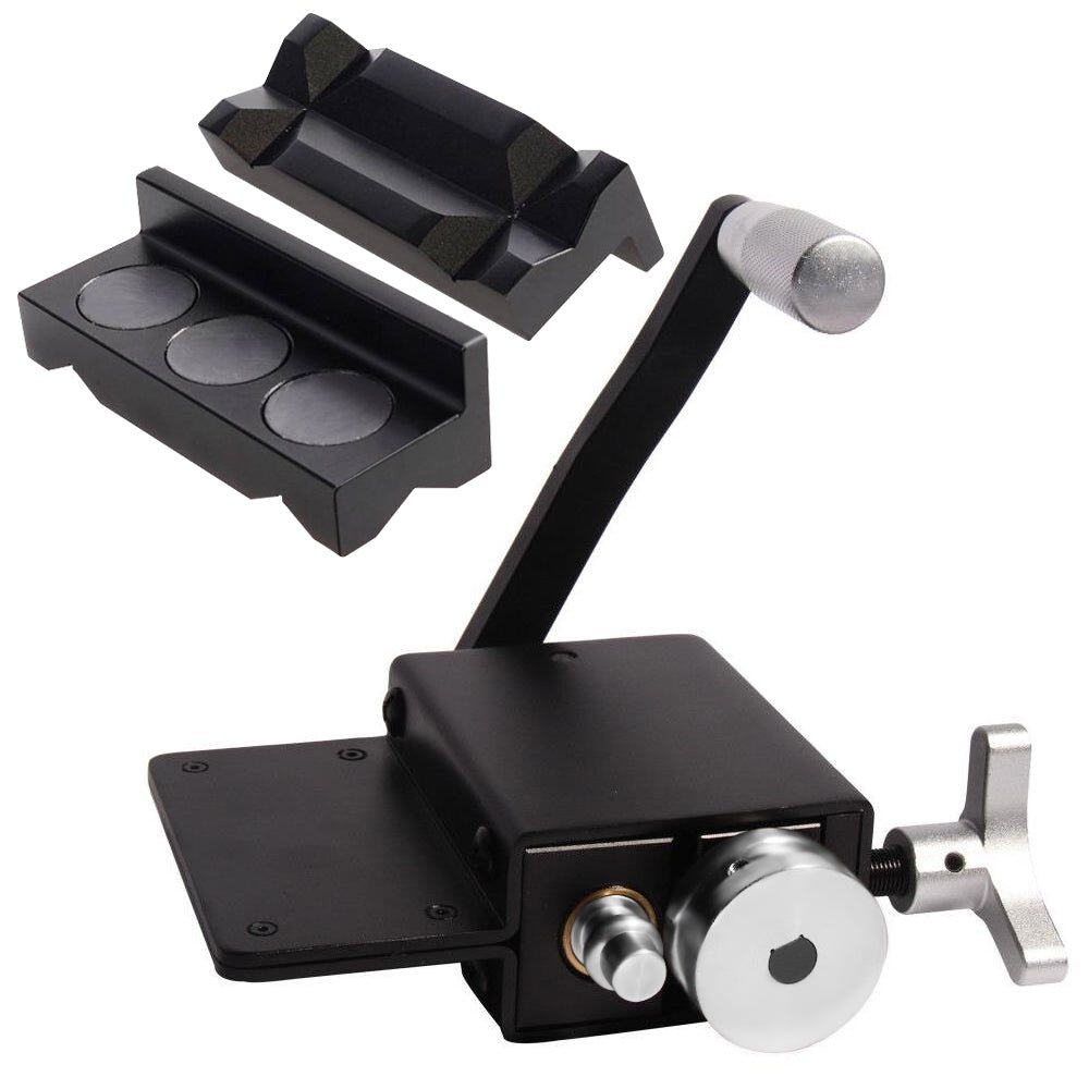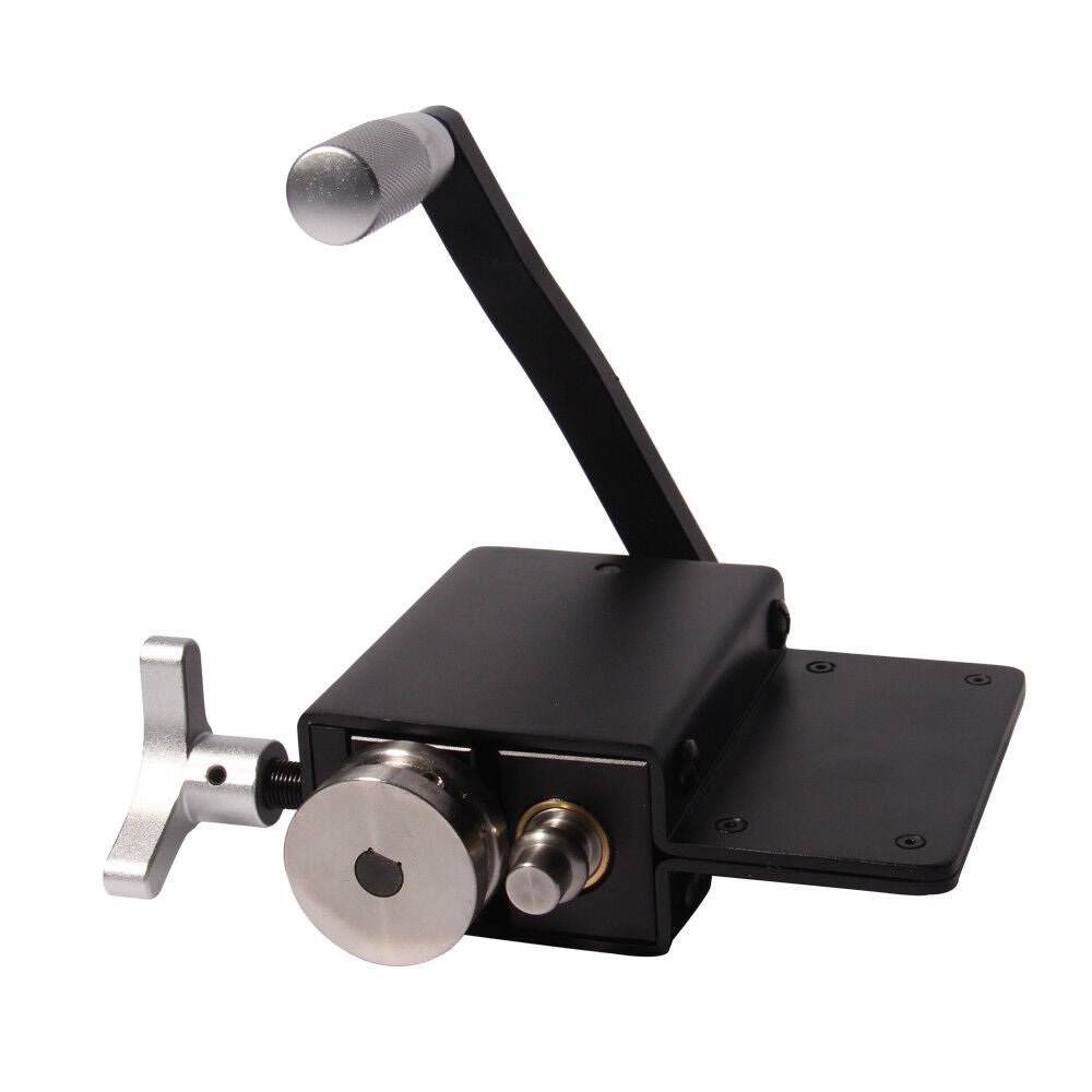 This vise-mounted tool will form a perfect bead on the end of aluminum or copper tubing. Simply insert the end of the tubing between the dies and start cranking the turning handle. Give the wheel a quarter-turn with each full rotation of the tubing to gradually tighten the dies against the tubing.