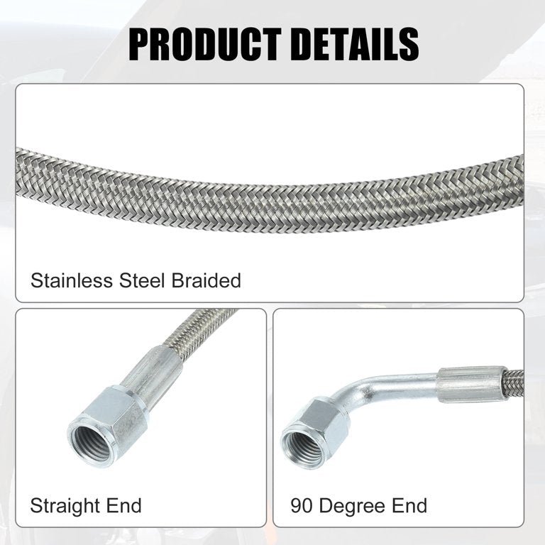 Turbo Oil Feed Line 48″ Steel Braided 4AN 90 Degree Straight Hose