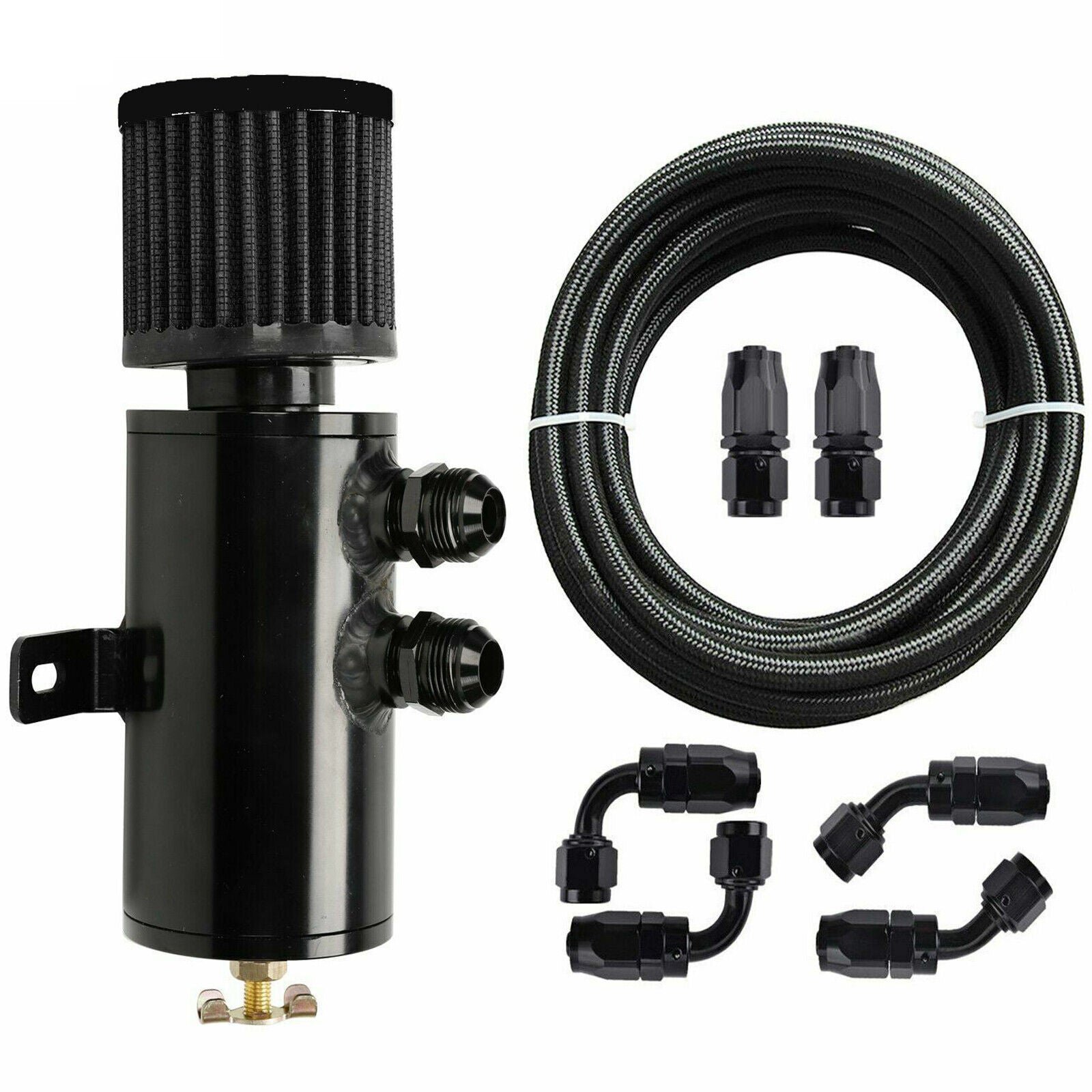 Universal 10AN Baffled Oil Catch Can Breather Can with Drain Valve 750ML Bundle and 10AN 5/8” Fuel Line Fitting Kit Nylon Braided CPE Oil Hose
