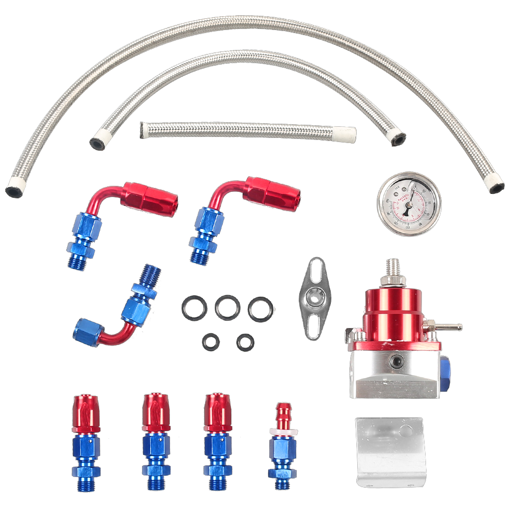 Aluminum adjustable EFI fuel pressure regulator kit with 0-100psi pressure gauge AN6-6AN fuel line hose fitting connectors kit.