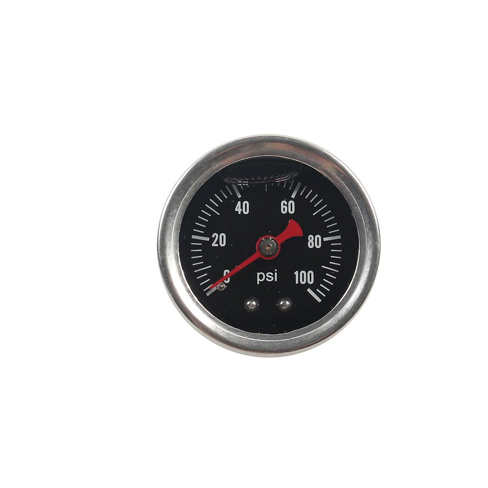 The pressure gauge needle shows you the exact reading. you can regulate the pressure to your needs. The fuel regulator pressure gauge range is 0-100psi.